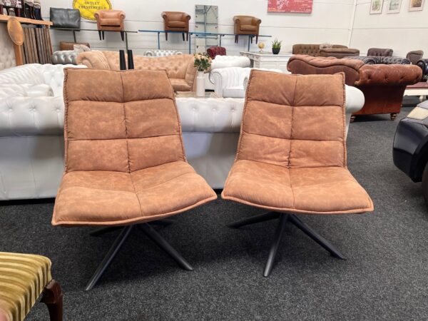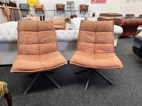 2 trendy draaifauteuils – microleder cognac