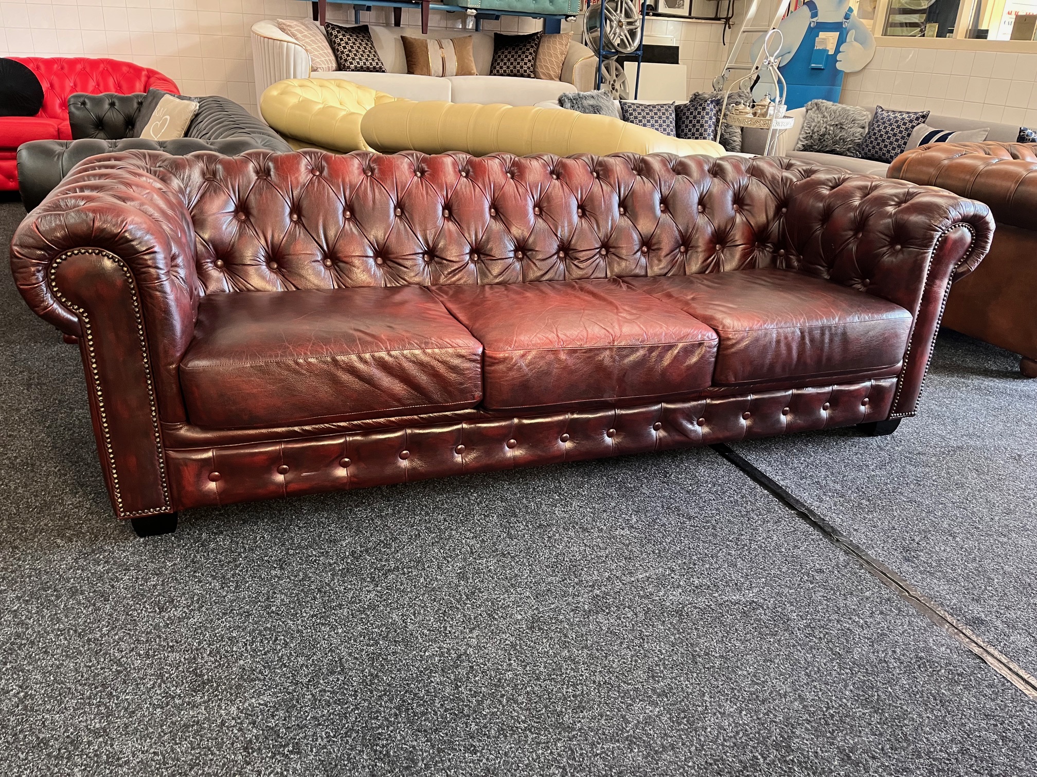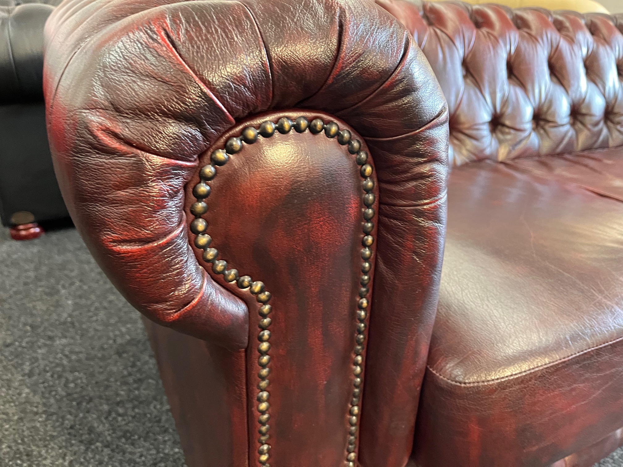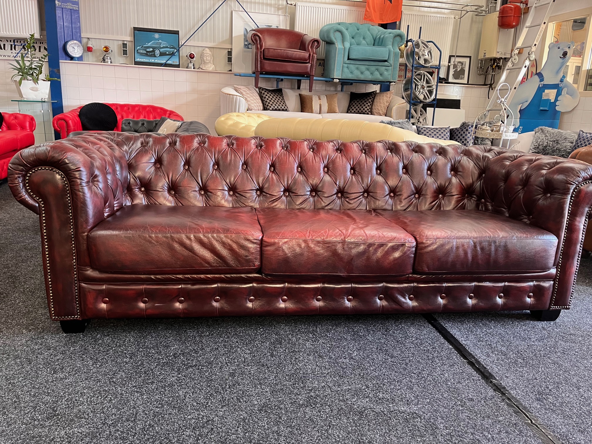 Chesterfield Brighton bank in stijlvol Oxblood rood Rundleer  een echte eyecatcher. Een unieke kans om een luxe bank aan te schaffen voor een scherpe prijs.