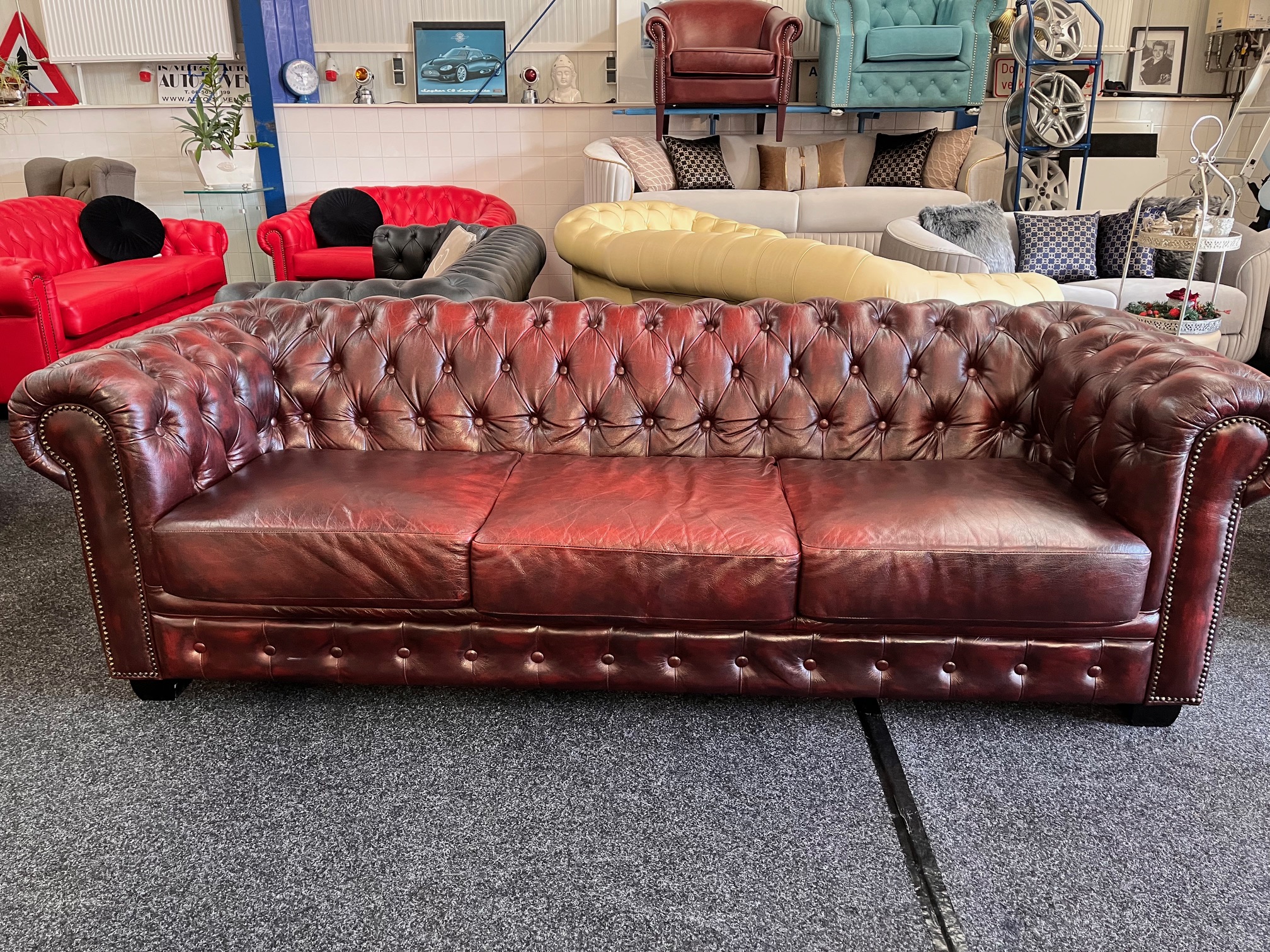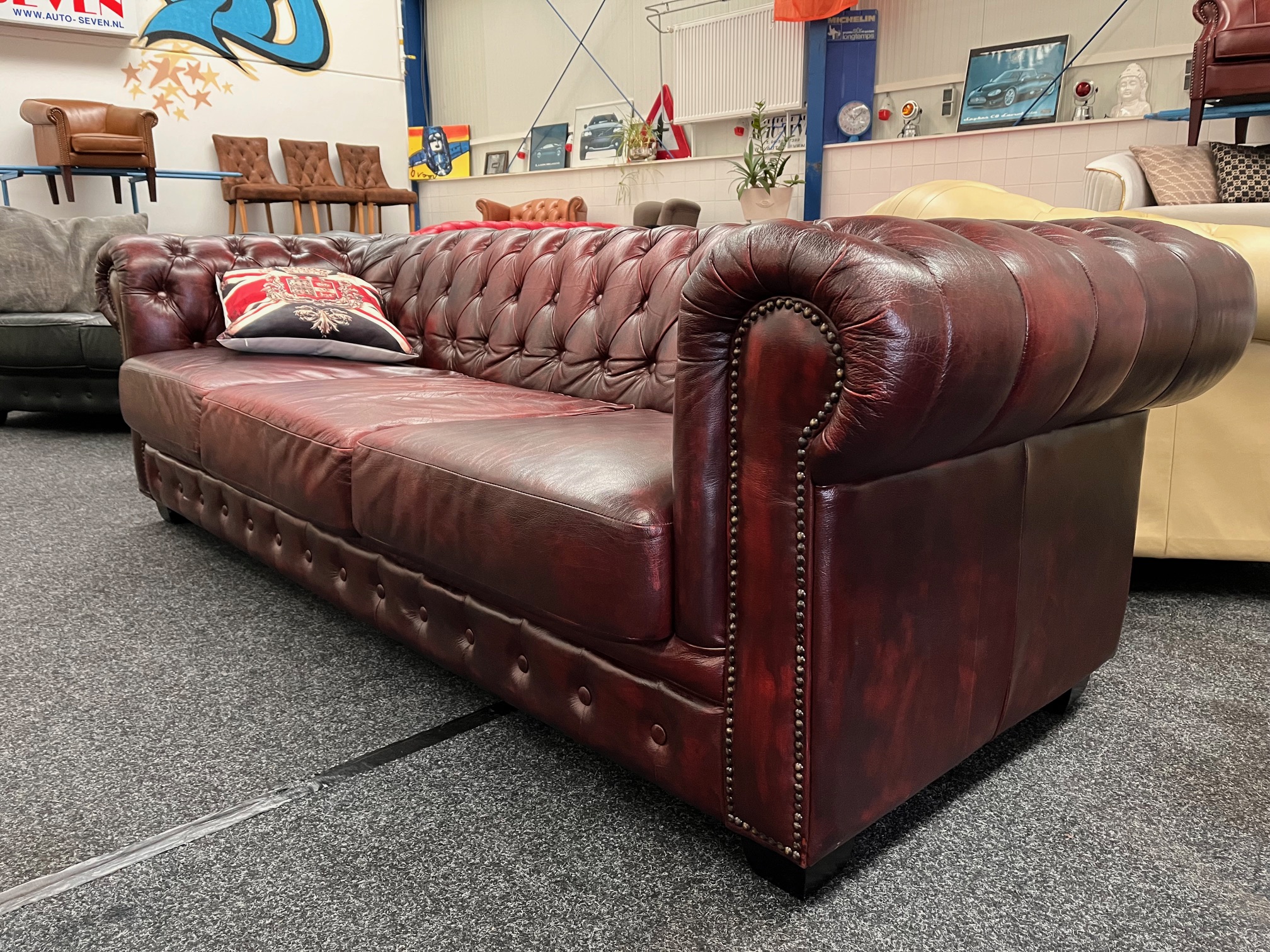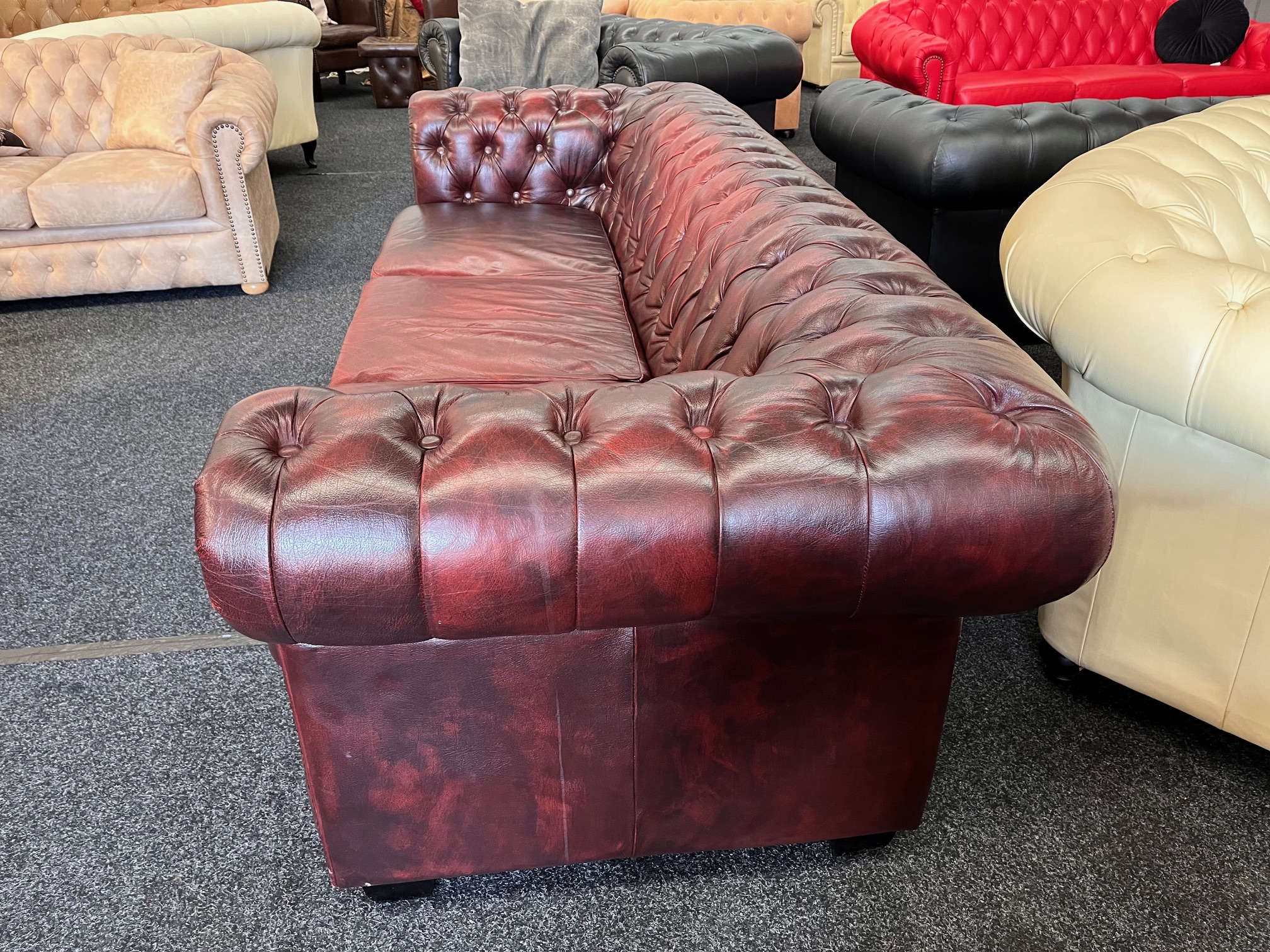 Chesterfield Brighton bank in stijlvol Oxblood rood Rundleer  een echte eyecatcher. Een unieke kans om een luxe bank aan te schaffen voor een scherpe prijs.