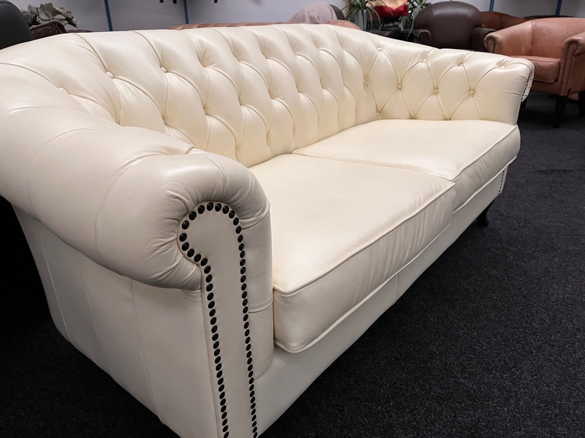 Te Koop: Kleine Chesterfield 3-zits bank in crème leder !!!